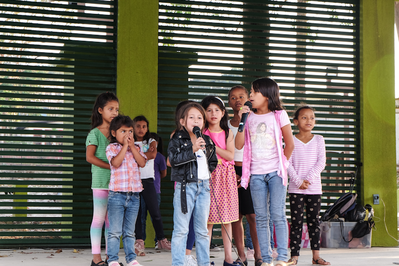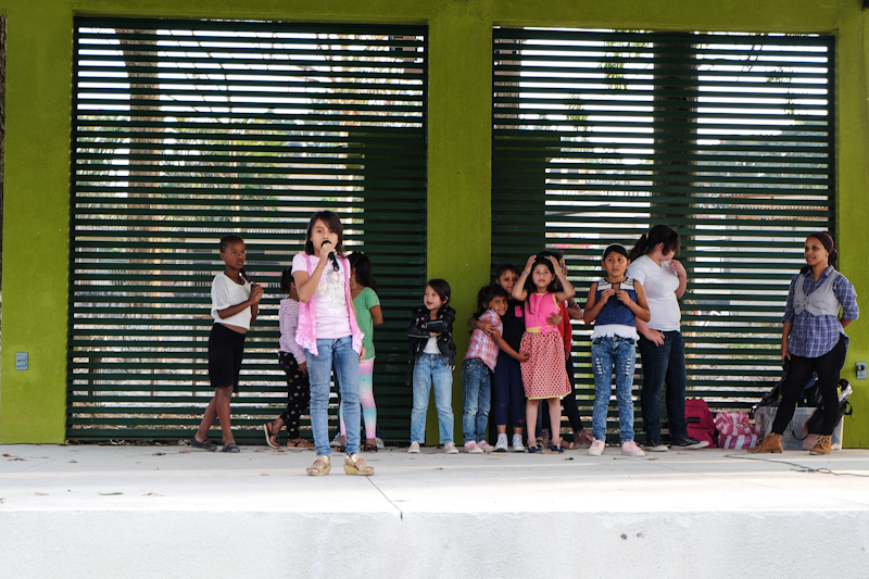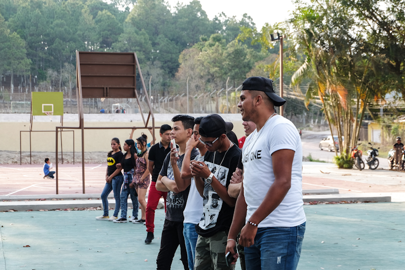 nach dem zweitägigen workshop durften sie dann mit unserer workshopleiterin pamela irias und unseren super rappern von santa rosa in den canchas auftreten. sie waren sehr nervös und ich auch. aber es war herrlich schön und das beste an dem ganzen war, sie durften anziehen was sie wollten – farbige kleidung. in honduras haben alle immer blaue hosen oder rock an und ein weißes hemd, gar alle schulen. da ist es wirklich saumäßig cool wenn man auf einen event, der eigentlich von der schule ausgeht geht, in farbigen klamotten auftreten kann. sau cool.
