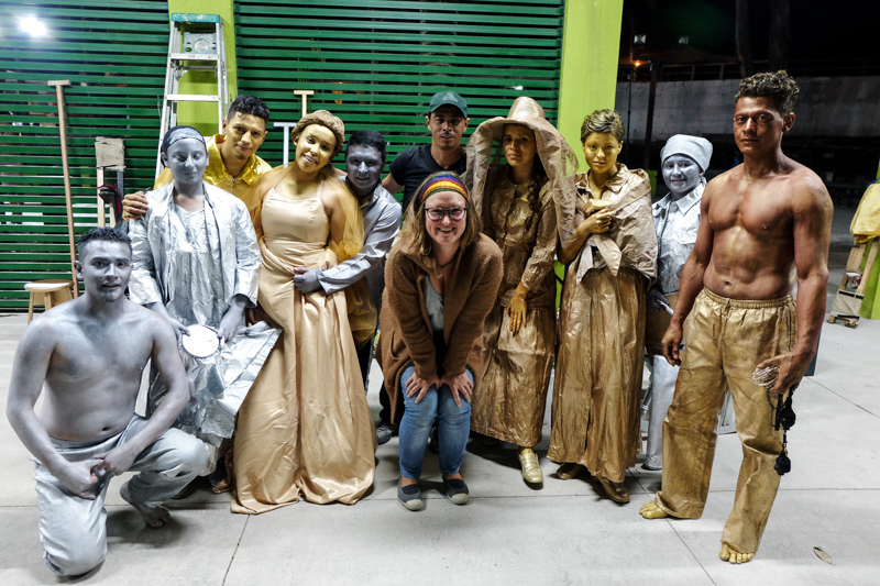 am darauffolgenden wochenende hatten wir einen event – ánimas de calle, lebende statuen und die waren auch sehr sehr gut, diese events waren der auftackt für den sommer, für mehr kunst und kultur in santa rosa. und heute beginnt die expo – copán, sowas wie alptag und markt nur mit kaffee und bohnen und kunst und kultur und so… ich weiß noch nicht genau, ich schau es mir noch an. ich werde euch dann mit fotos versorgen, was ich aber schon festgestellt habe, polizei und militär haben aufgerüstet.. aber das ist hier normal, sobald ein event ist wimselt es von menschen in grün und blau. also kauf ich mir jetzt ein rotes kleid und stell mich mitten hinein 😛